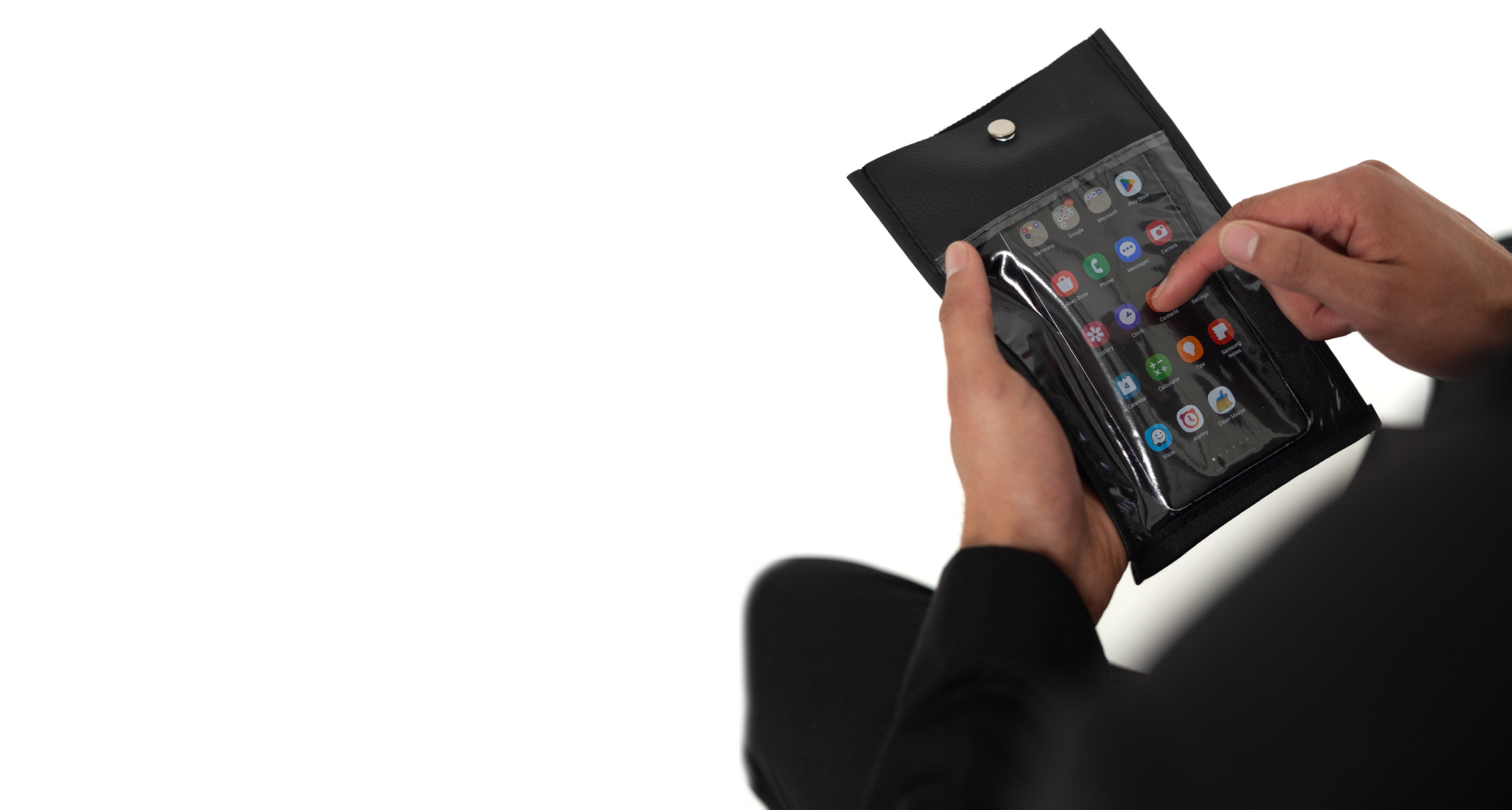 Our pouches can fit phones of all sizes, including larger models. The only exception is with Z-flip and Z-fold phones—they'll need to be closed before being placed in the pouch, which means they can’t be used while inside.